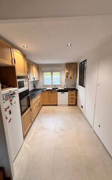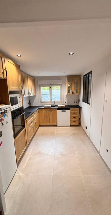 Dans ce projet, CMB Rénovation a réalisé la rénovation complète d’une cuisine, avec pour objectif de créer un espace chaleureux, fonctionnel et durable, adapté à un usage quotidien.