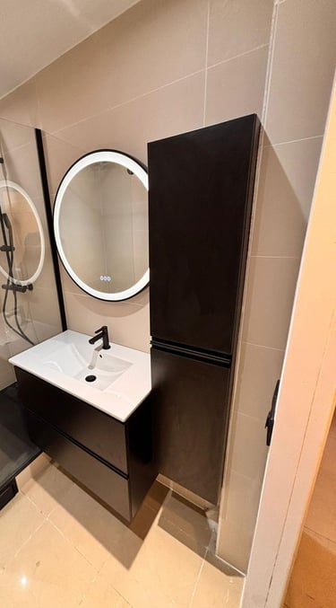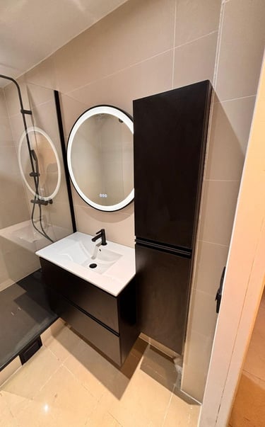 Rénovation de salle de bains Contraste moderne & optimisation de l’espace
